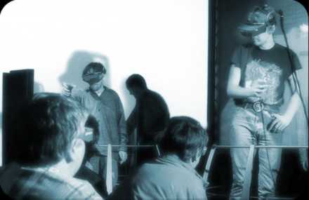 In the last ten years or so, virtual environments and the inappropriately named 'virtual reality' technologies have been offered as possible devices that can 'escape' the screen. Virtual environments locate a user or imersant within a computer constructed representation of space and time. What is interesting about the potential of such environments is their representational systems of space and time, which can be significantly more unbounded than any cinematographic effect can be. |